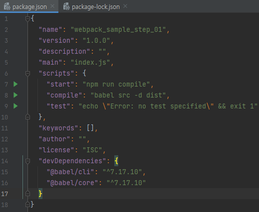 npm 명령어를 이용하여, @Babel/core , @Babel/cli 패키지를 설치합니다.