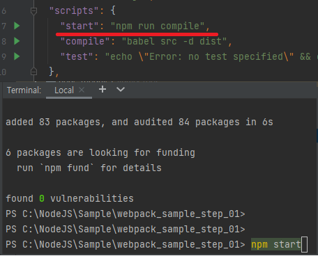 [과정5] package.json 파일의 컴파일 명령을 실행합니다.