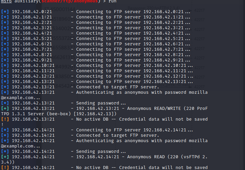 3. set RHOST 192.168.42.0/24 로 C클래스 대역대를 전체 스캔합니다.